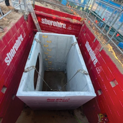 – Installation of various sewer manhole pits and associated pipework. This included 10No. sewer manholes ranging from 1200dia to 2400Dia & Pipework ranging from 450dia to 710dia.